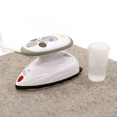 The Nifty Notions Mini Steam Iron is the perfect tool for quick and efficient ironing on small projects like piecing and applique. This palm sized iron heats up in no time, giving you fast, reliable results when you need them most. With variable temperature settings you can easily adjust the heat to suit different fabrics, ensuring the perfect press every time. The one-touch steam control provides and extra burst of steam to tackle stubborn wrinkles, while the non-stick sole plate glides smoothly over your materials without snagging or scorching. Designed with convenience in mind, the Nifty Mini Steam Iron comes with a handy cup for easy filling so you don't have to worry about spills or mess. Its compact, ergonomic design makes it comfortable to hold and maneuver, even during extended use. Whether your working on small sewing projects, quilting or applique, this mini iron delivers precise and flawless results, making it an essential addition to your crafting toolkit!