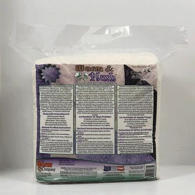 The Warm Company is pleased to introduce quilter to a new friend -Warm & Plush! Warm & Plush is the warmest natural batting ever manufactures -No scrim, just 50% more soft, warm cotton! The natural, ultra-clean 100% cotton remains soft and pliable, whether quilting is close or up to 6: apart. You appreciate how the top and backing fabrics cling to Warm & plush while the tension is perfect for floating quilt frames.